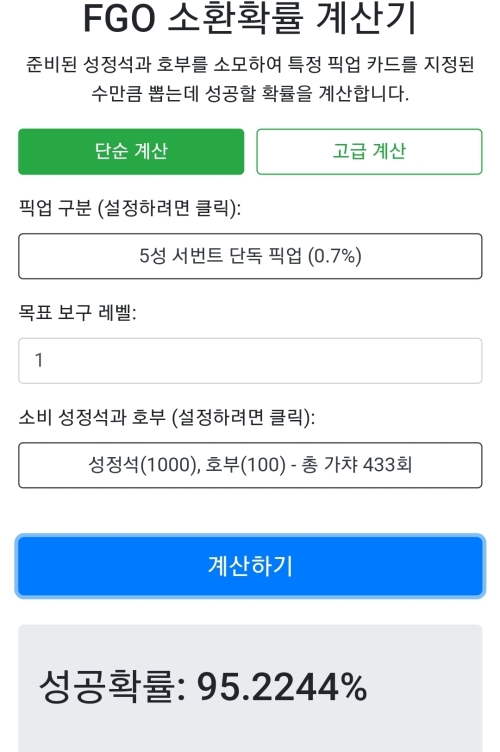 소환 확률 계산기 페이트 그랜드 오더 헝그리앱 모바일