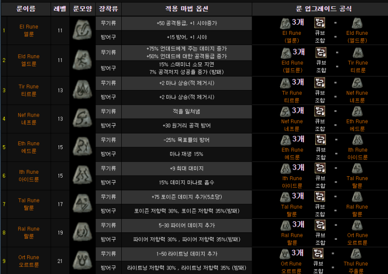 디아블로소식 룬조합표 및 간단한 큐브 사용법