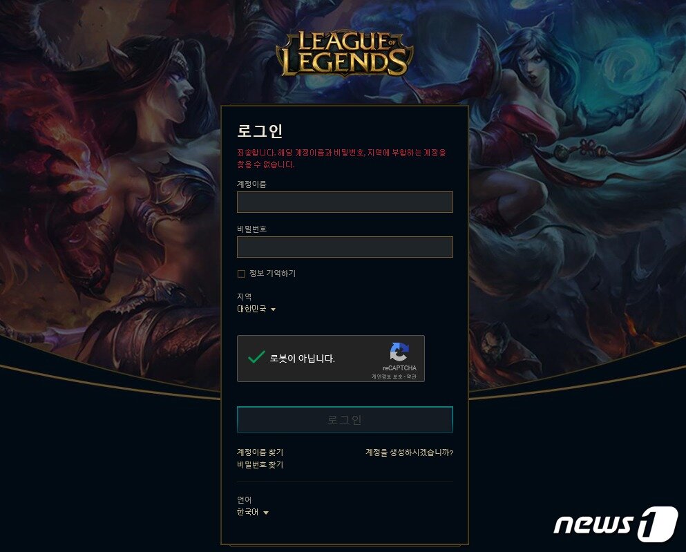 롤 게임 또 로그인 오류 발생 시스템 오류가 원인
