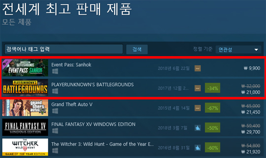 이슈 배틀그라운드 사녹 Dlc 스팀 판매 순위 1위 등극