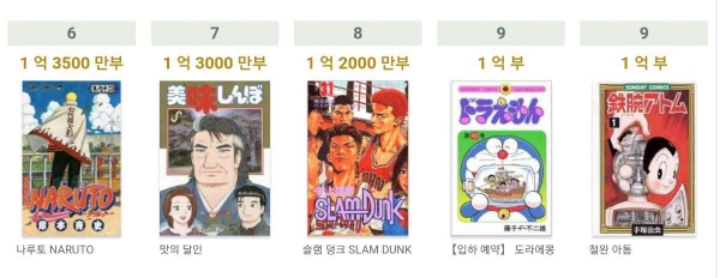 역대 일본 만화 판매량 순위 웃긴자료 도탁스 Dotax