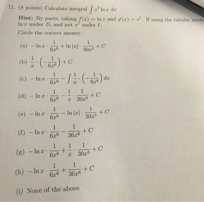 Solved 11 8 Points Calculate Integral X 7 Ln X Dx Hint Chegg Com